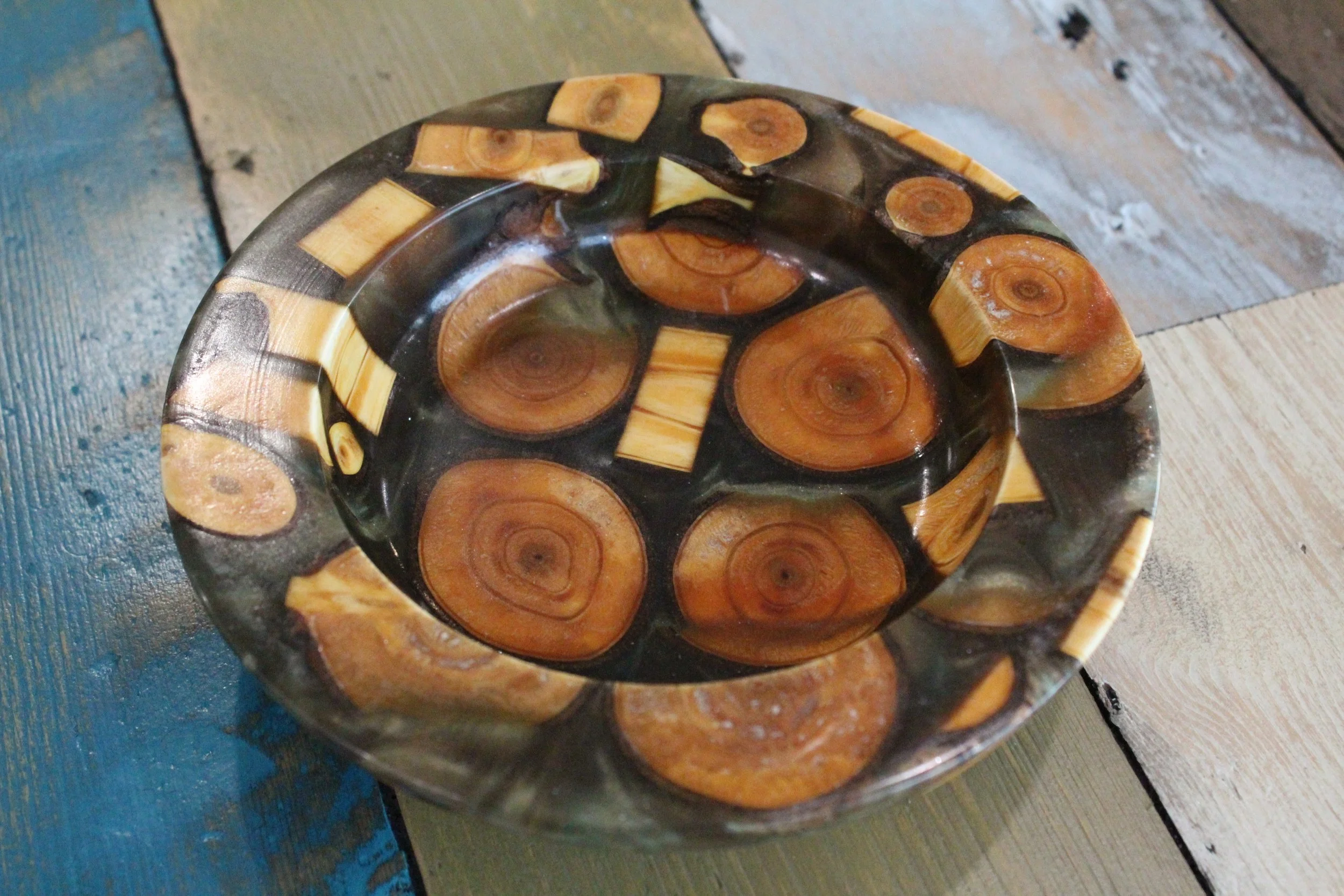 This bowl was a bit of an unusual one and was one of my 12 days of Christmas 2020 projects. For this project I took my old Christmas tree and dried out the trunk, I then cut it into discs and wedges and encased them in resin, I then created the final shape of the bowl.